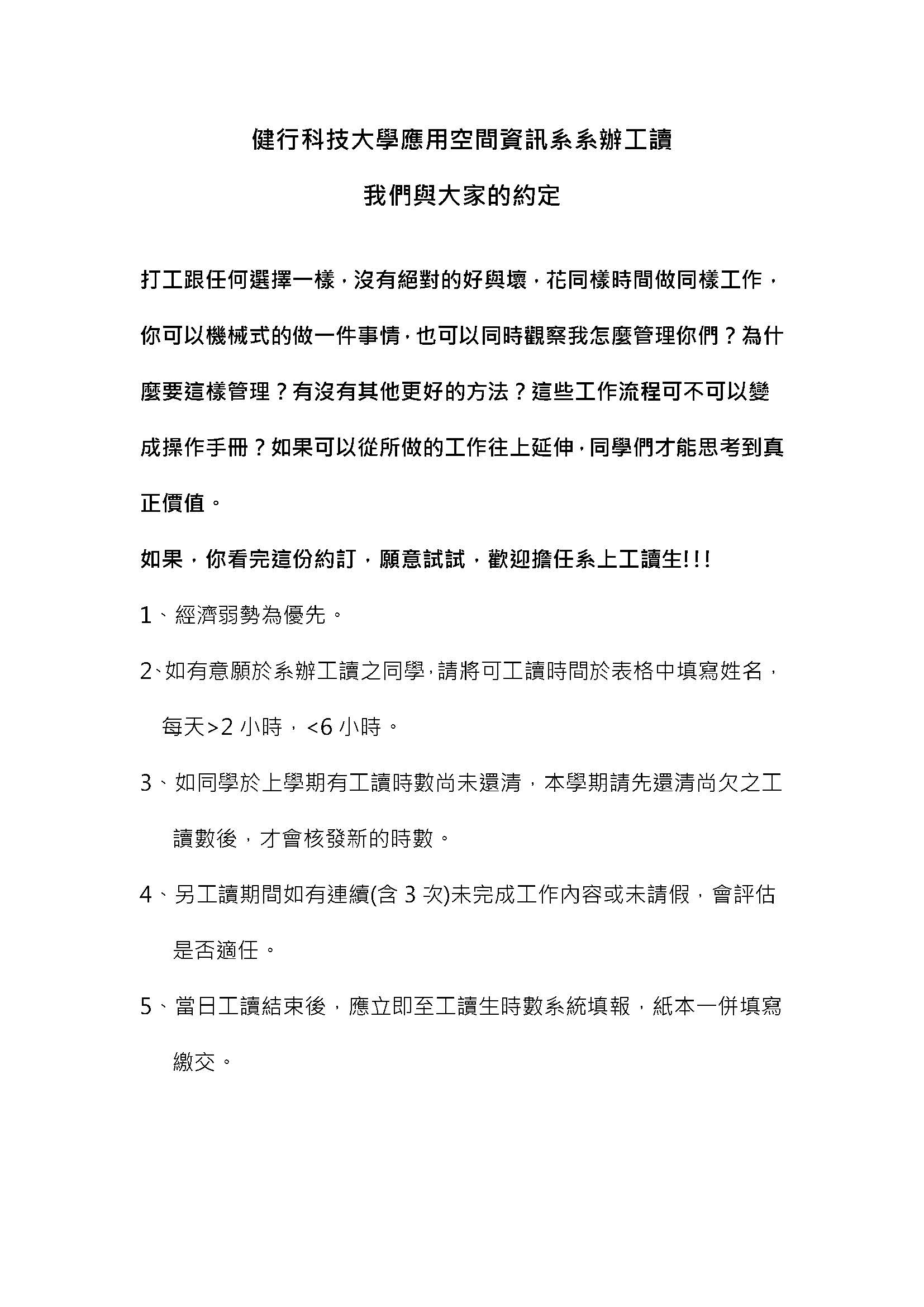 如果,你看完這份約訂,願意試試,歡迎擔任系上工讀生!!!