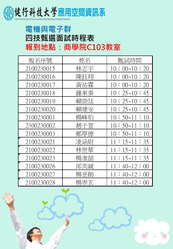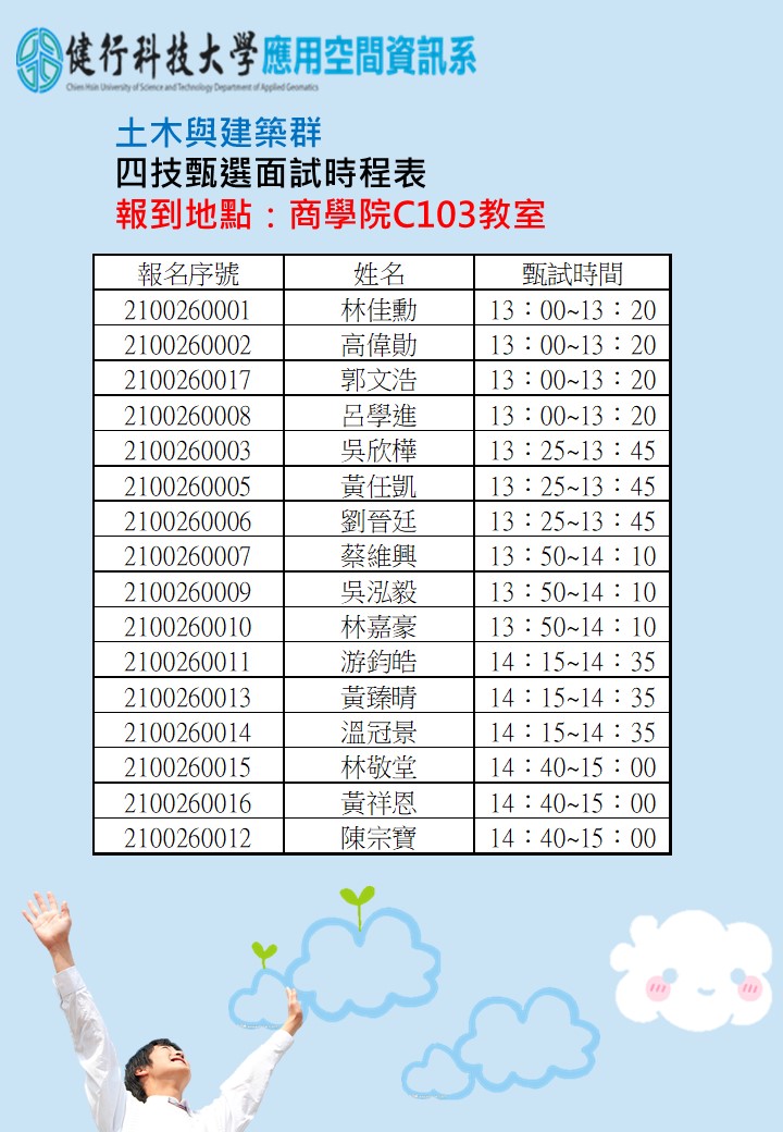 應用空間資訊系--四技甄選面試時程表