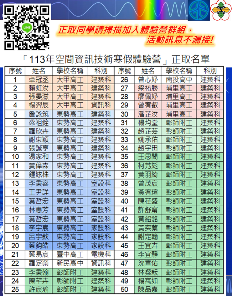 113年空間資訊技術寒假體驗營-活動訊息及正取名單