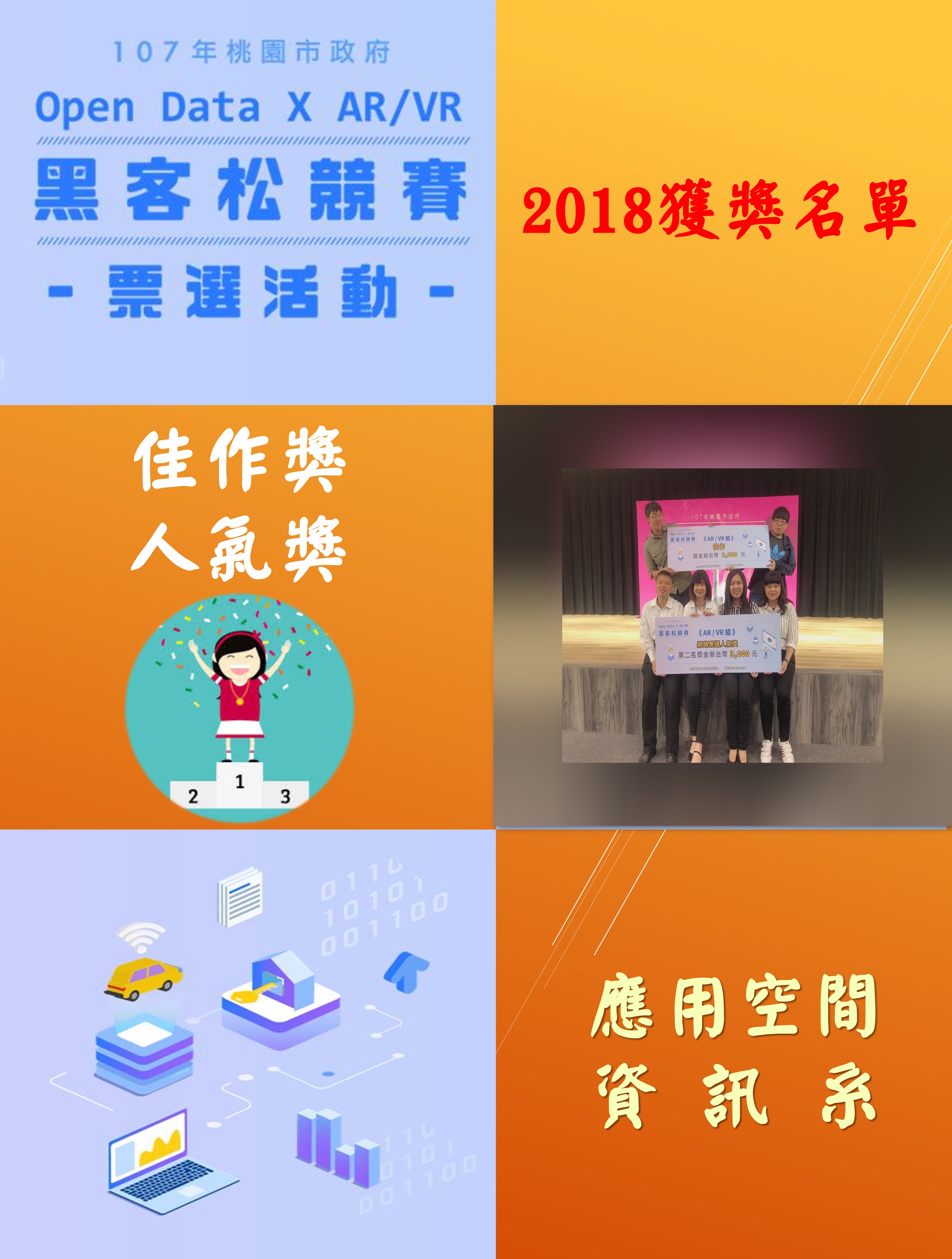 恭喜本系學生參與107年桃園市政府Open Data X AR/VR黑客松競賽-獲得佳作與最佳人氣獎